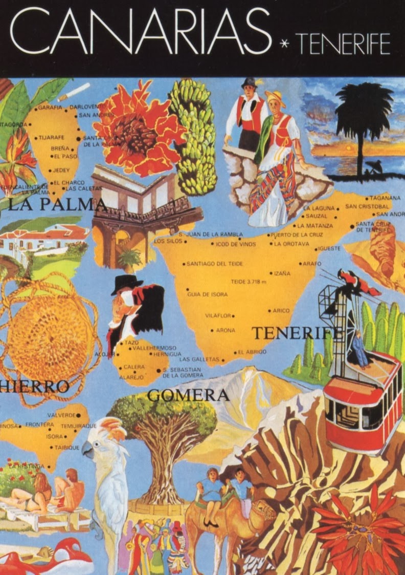 Canary Islands is composed by seven islands. The postcard shows mainly Tenerife and some of the closest to Tenerife.